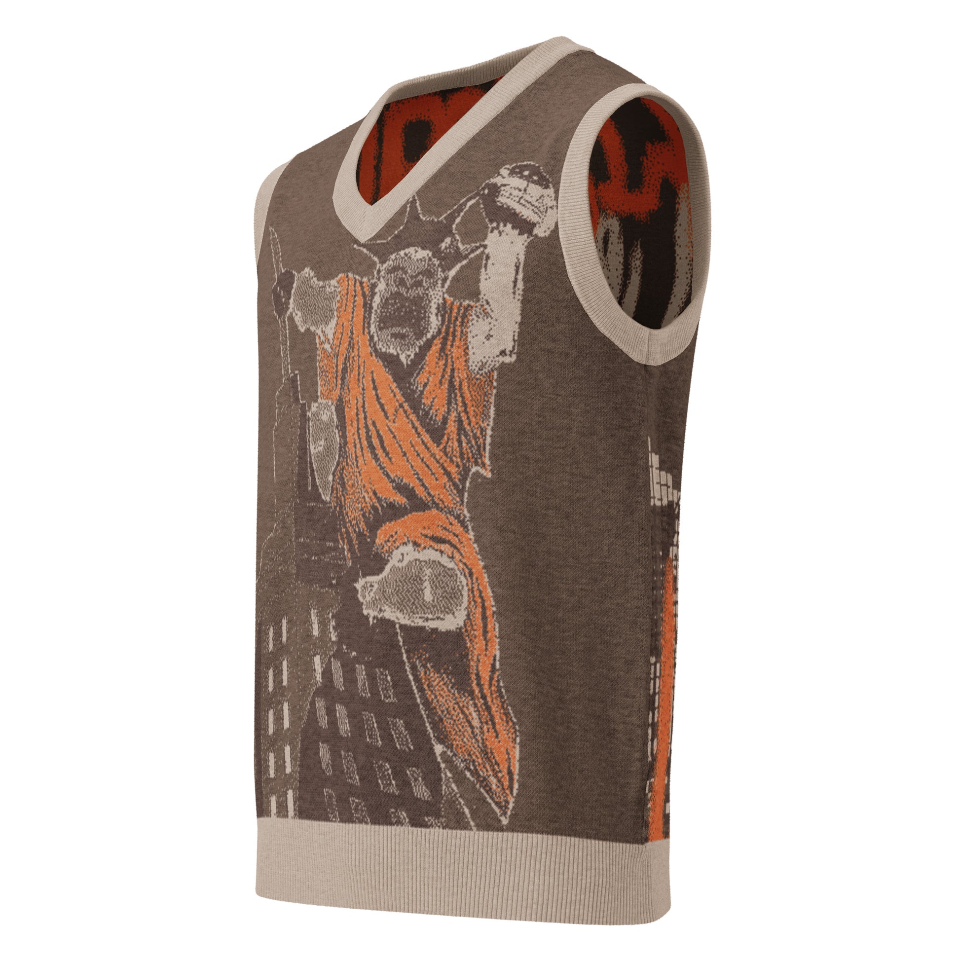 Knit V-neck Kong classic vest, but make it fashion. This lightweight knit V-neck is soft, comfy, and has just the right amount of throwback-meets-modern energy. With rich jacquard detailing and a classic unisex fit, it’s the perfect layer for cold days, cozy nights, and looking effortlessly cool.